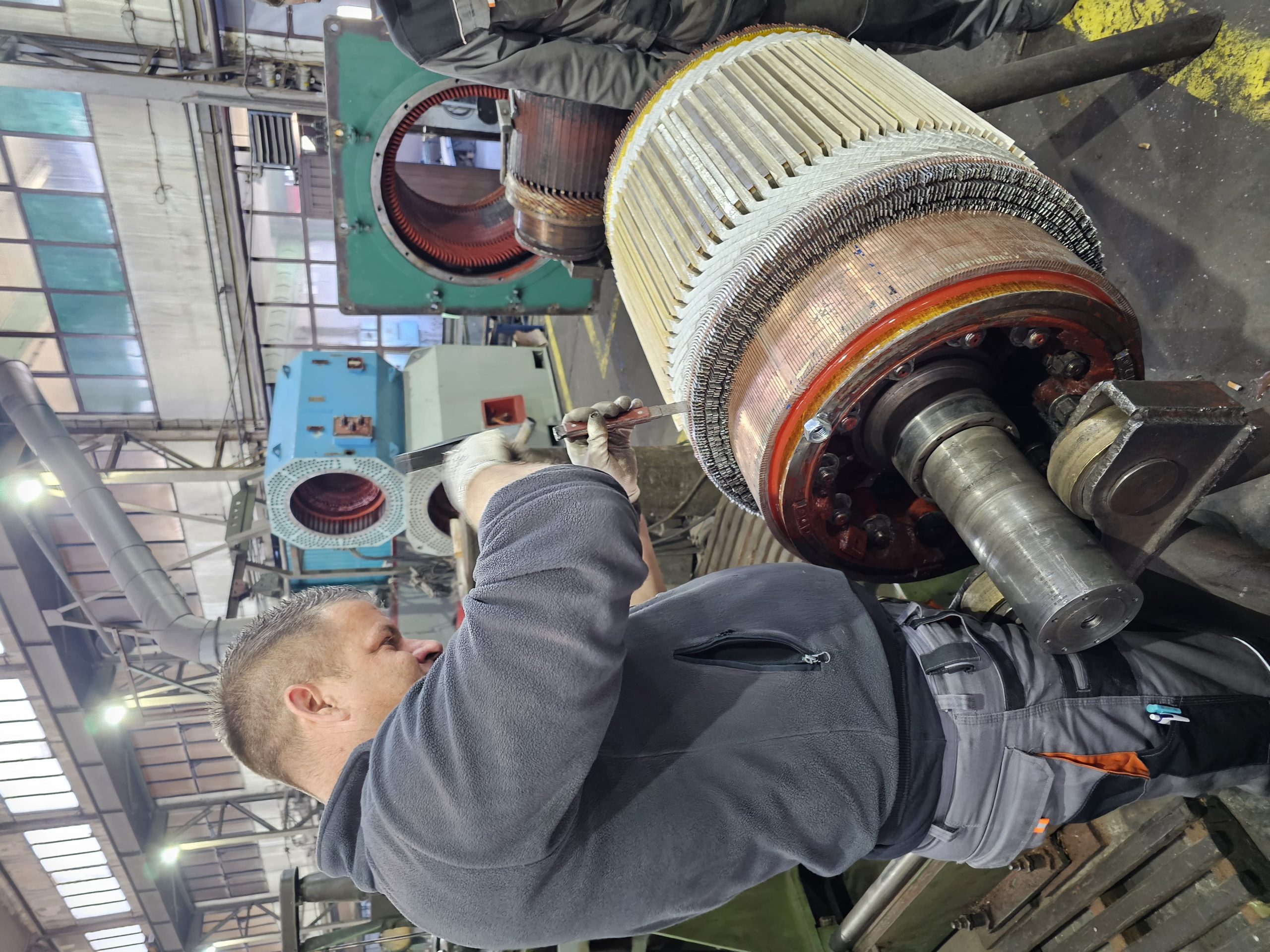 We are trained and have the ability to make different types of windings, stator windings, rotor windings, main poles, compound, compensating… We have a plant for vacuum impregnation of pressure windings (VPI) using epoxy or silicone resins. Our test station for testing machines from the traction program can test at idle and under load (traction motors type ISVK 644-8). We use modern equipment to detect faults in the windings of traction machines (Baker instrument), and all manufactured windings are tested in our test station to ensure complete quality control and delivery.